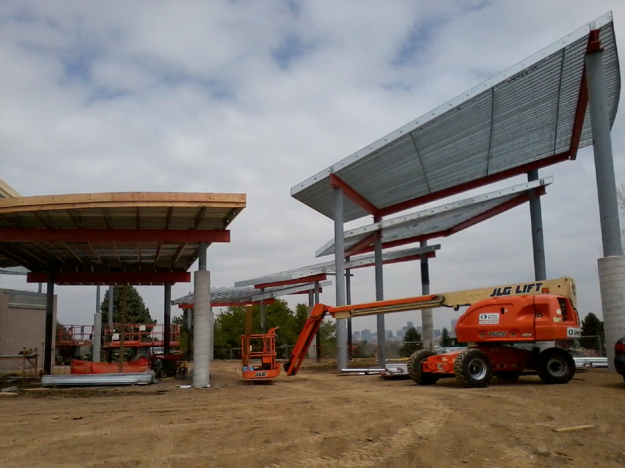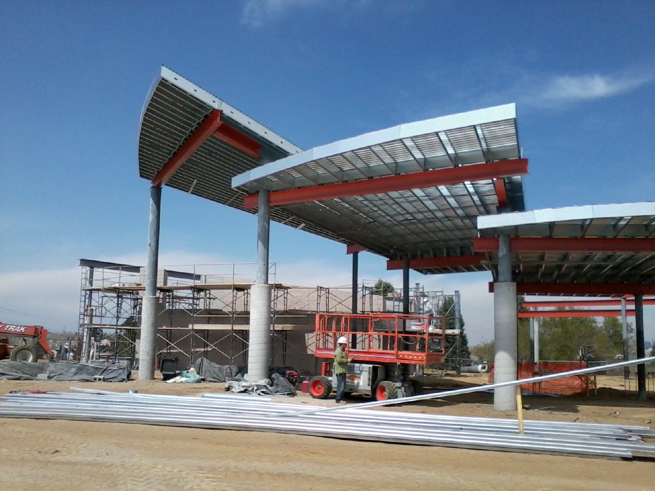Exterior heavy gauge roof built on multiple radii and designed as “floating fans.” This unique, geometrically complex park addition was built on time and on budget to exacting specifications.